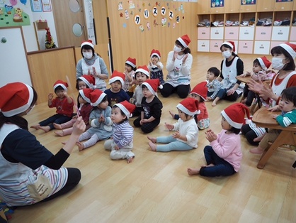 12月25日(金)にクリスマス会を行いました!クリスマス前から「サンタさん来るかな?」「クリスマスだね」とクリスマス会を楽しみにしていました♪