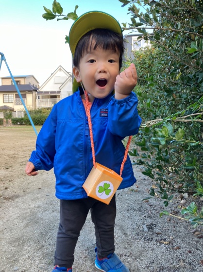 探検バックを持って公園にお出かけしました!「あった!」とどんぐりを見つけたことを教えてくれる子や夢中になってどんぐりをバックに詰める子など、思い思いに楽しむ子どもたちです♡保育園に戻ってきてからは、バック一杯のどんぐりを見せてくれていました♪