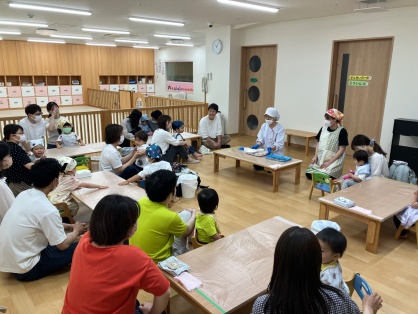 すもも組さんもパパやママと海苔をギュッギュっとしたり、一緒にスプーンを握って具材を入れてみたりと頑張っていました☆つまみ食いもクッキングの醍醐味ですよね♡