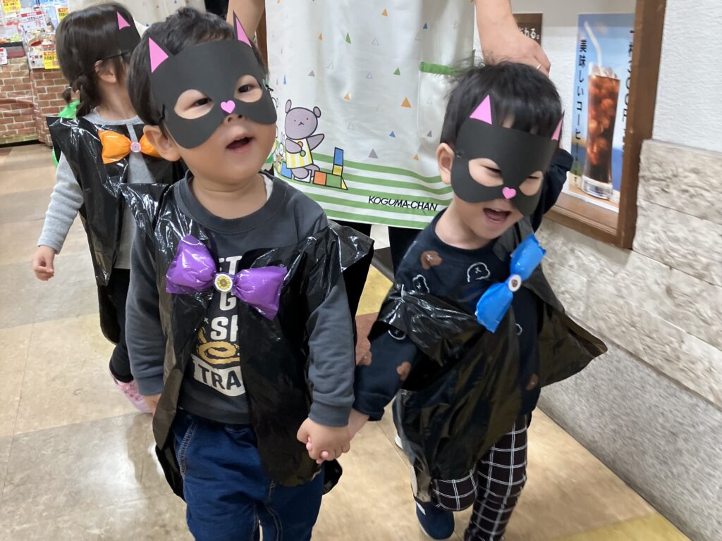当日はどの子も衣装を着ることができ、「かわいい〜!!」と大盛り上がりでした♡保育者からはマジックを見せてもらいましたよ☆今年は雨模様だったので、同じ建物のスーパーへ散歩に出かけ、地域の人にもお披露目をしに行きました✨