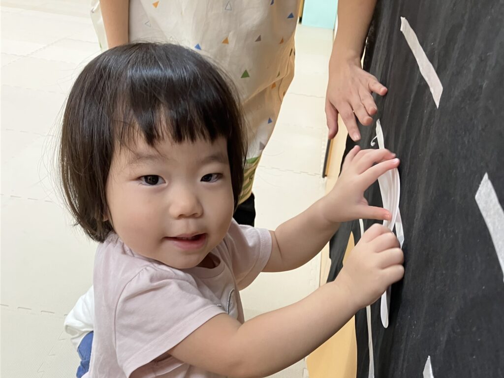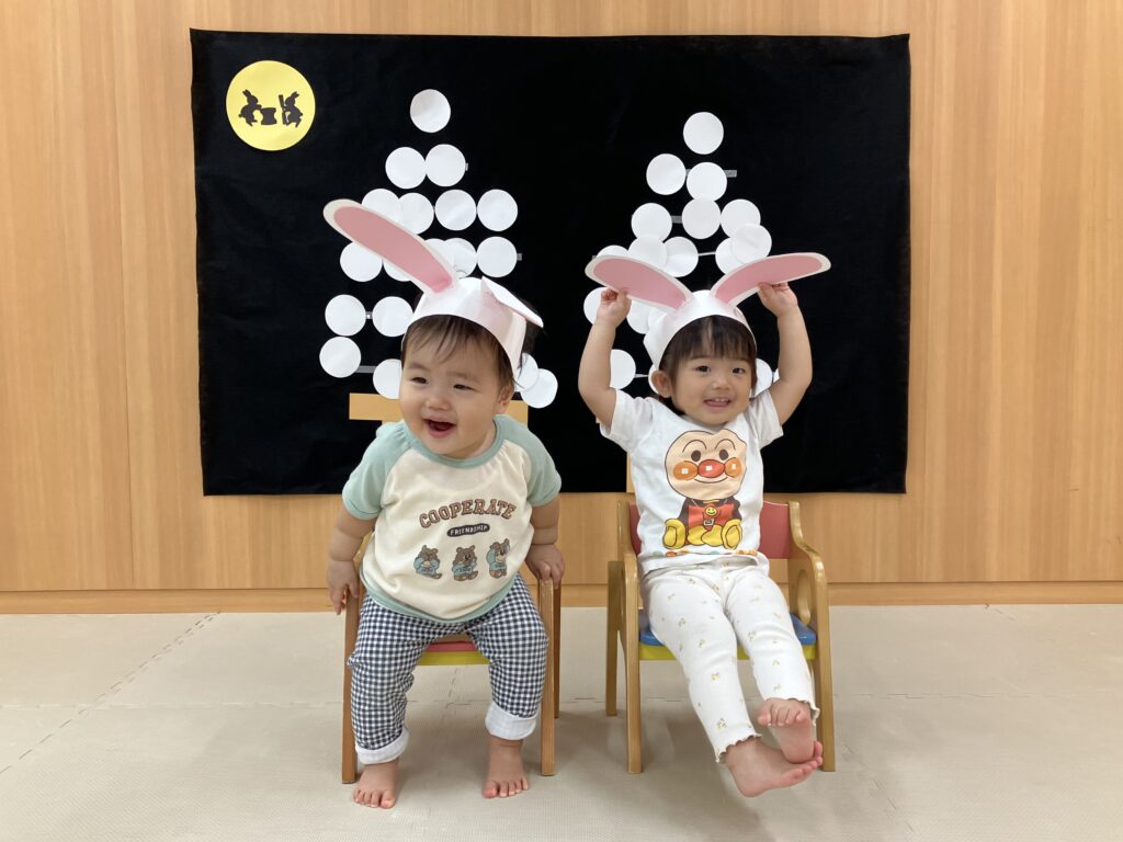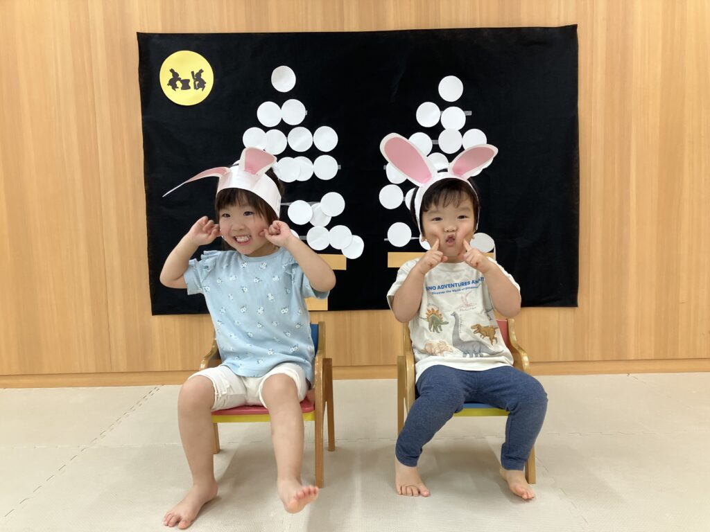 今年は10月6日が「中秋の名月」だったので、スマイルキッズでもみんなでお月見の雰囲気を味わいました😊手作りのうさぎの耳を付けてお餅つきのうさぎさんに変身♡かわいいうさ耳姿を見せてくれましたよ✨「ぺったん!ぺったん!」「がんばれー!」の掛け声の中、杵で手作りお餅をつきました☺️さすがいちご組さん!狙いを定めて、力が入っていましたよー!!!