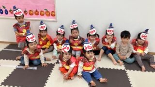 ☆10月の子どもたち☆ ⭐︎ハロウィン集会10月31日にはみんなで仮装をし、ハロウィンを楽しみました♡すもも組さんはみんなが大好きなアンパンマンの衣装を着ました✨始めは着ることを嫌がるお友だちもいましたが、みんなが着ている姿を見て、少しずつ『着てみようかな、、、』... 2024.11.08