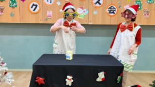 ☆12月の子どもたち☆ ☆クリスマス会12月25日にはクリスマス会が行われました♪「サンタさんくるかな?」と朝からワクワクの様子の子どもたちです(^ω^)保育者からのマジックショーで盛り上がりました✨みんなで楽しんでいるところにどこからか鈴の音が!後ろには大きなプ... 2025.01.08