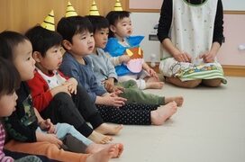 2月3月のスマイルっこ☆ 豆まきをしたよ!2月は節分!みんなで可愛い鬼さんに変身しました♪鬼の絵に向かって豆まきをしていると本物の鬼が!!大きな鬼に驚き泣きながら保育者に抱きつく子。怖いながらも一生懸命に豆を投げる子。へっちゃらで鬼に近づく子。それぞれに可愛い姿が見... 2023.04.03