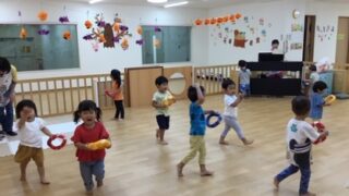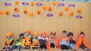 ハロウィンパレード 10月31日(木)にハロウィンパレードを行いました!ハロウィンの日をとても楽しみにしていた子ども達、当日が来るまで「トリックオアトリートいうの!」と張り切っていました♪それぞれにカボチャやドラキュラ・ハチや恐竜など子ども達は自分で「これにす... 2019.11.05