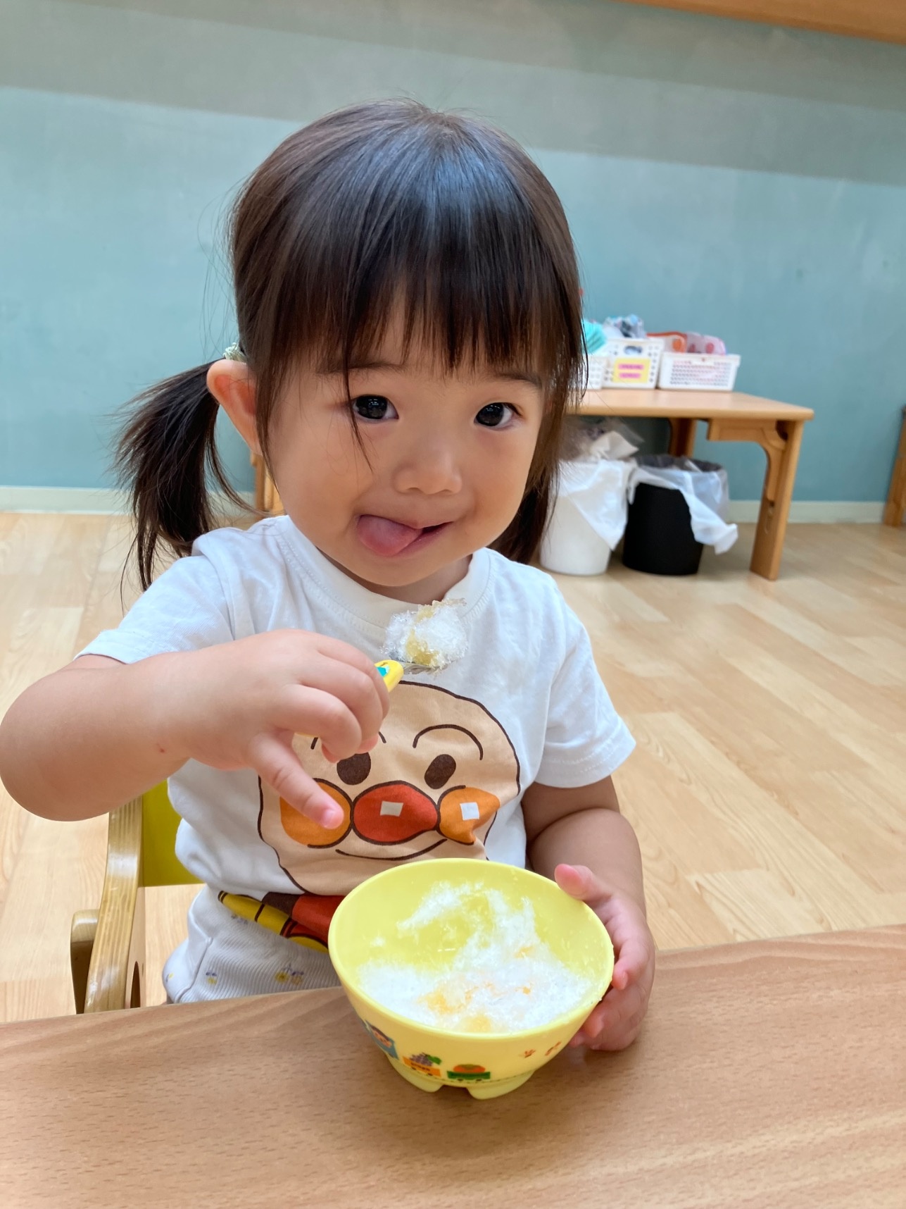 眉間にシワを寄せて「つめたい!」と教えてくれるお友達もいました(^_^)夏はやっぱりかき氷ですね♡